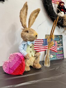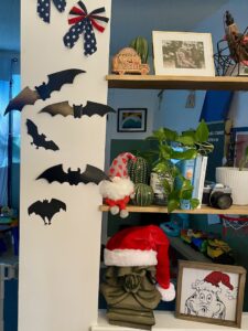 With all of the decor ready, I grab a stack of command strips and hooks and start to assemble. Every year is a little different. Sometimes I do areas of one specific holiday, while other’s I mix and match. Each year, we take a group picture in the same spot, so the goal is to showcase some of the chaos in the background, but other than that, it’s really as much or as little as I’m feeling.