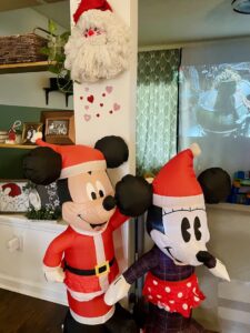 After years of doing this, I created a method to grab everything I wanted without having to dig into a million different containers. I have a couple of large clear containers, that I keep some of my default decorations in. We have Halloween garden gnomes, Mickey & Minnie Christmas inflatables, a large bag of Easter Eggs, some tacky 4th of July streamers, and a mix of other holiday paraphernalia.
